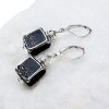 Fekete fülbevalók ezüst keretezéssel és fémes hatású részletekkel, amelyek minden nőből hölgyet alakítanak.