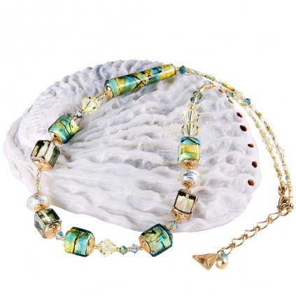 Előkelő karkötő gyöngyökkel, arany, sárga és zöld színárnyalatokkal, valamint színtiszta fémmel az üvegben, amely miatt még Dionysosnak sem kellene szégyenkeznie.
